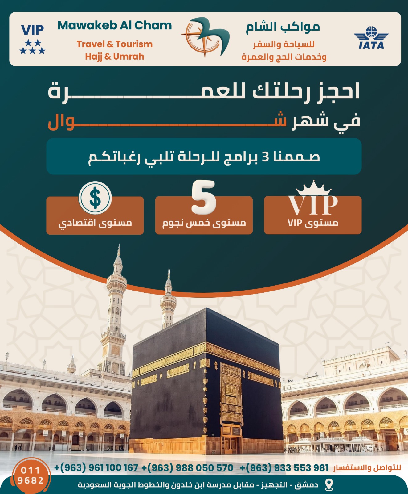 املأ بياناتك الآن ودع فريق مواكب الشام عمرة يتولى عنك تفاصيل التنظيم والتنسيق، لتتفرّغ للنية والروحانية.